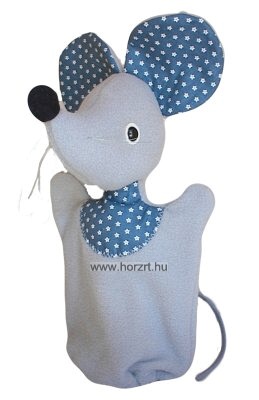 Magyarországon előállított, többnyire magyar alapanyagokból, kézi munkával készített, magas minőségű termék, mely kimondottan pedagógia módszertani szempontok alapján lett kialakítva. Felnőtt kézre méretezve, így kiválóan alkalmas az anyanyelvi vagy zenés foglalkozások színesítésére, kiegészítésére. Az egér kesztyűbáb 25-30 cm nagyságú, ötujjas, puha textil anyagból készült báb. Teste szürke, kék alapon fehér mintás vászon betétekkel. Hosszú orrának hegye fekete, szemei kis méretűek és gombszerűek, így hűen tükrözik az állat jellegzetes megjelenését. Nagy fülei barátságos és mókás külsőt biztosítanak.