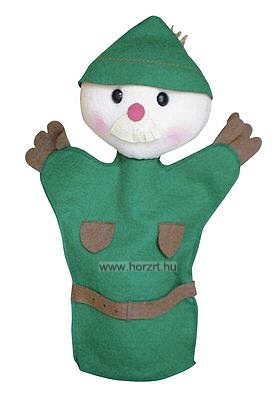 Magyarországon előállított, többnyire magyar alapanyagokból, kézi munkával készített, magas minőségű termék, mely kimondottan pedagógia módszertani szempontok alapján lett kialakítva. Felnőtt kézre méretezve, így kiválóan alkalmas az anyanyelvi vagy zenés foglalkozások színesítésére, kiegészítésére. A vadász kesztyűbáb 25-30 cm nagyságú, három ujjas, puha textil anyagból készült báb. Teste középzöld, barna övvel és zsebekkel. Vadászkalapja a testével megegyező színű. Feje fehér, arcán rózsaszínes orr, fekete szemek és fehér bajusz található.