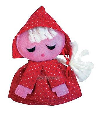 A Piroska ujjbáb arca és kezei rózsaszínek, ruhája és sapkája piros színű. Haja fehér színű fonal. Az ujjbábok mérete általánosságban kb. 12,5 cm.