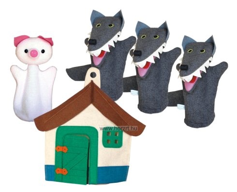 Tartalma: 5 db kesztyűbáb, 3 farkas, malac, ház. 4 éves kortól.