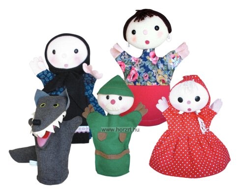 Tartalma: 5 db kesztyűbáb, Piroska. nagyanyó, farkas, vadász és anya. 4 éves kortól.