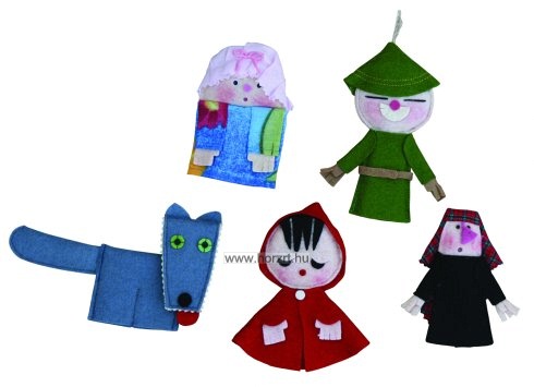 A Piroska és a farkas ujjbábkészlet tartalma 5 db ujjbáb: Piroska, farkas, nagyanyó, vadász és anya. Az ujjbábok mérete általánosságban kb. 12,5 cm.