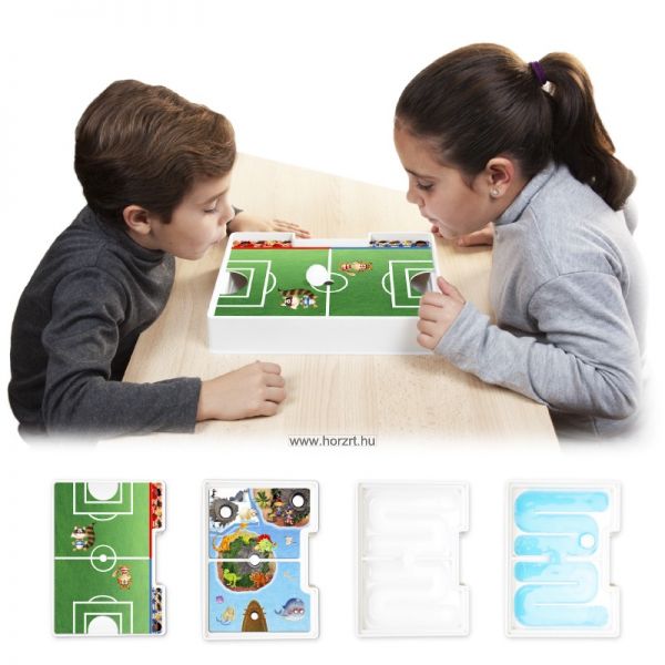 - Tartozékok: J átéktábla, 2 db fél játéktáblát letakaró sziget sablon és labda