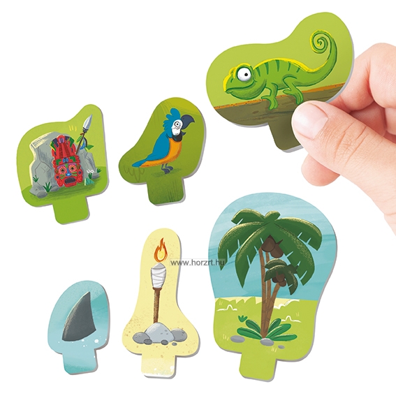 - A dzsungelben. Akadályai a kaméleon, a papagáj és az azték maszk.