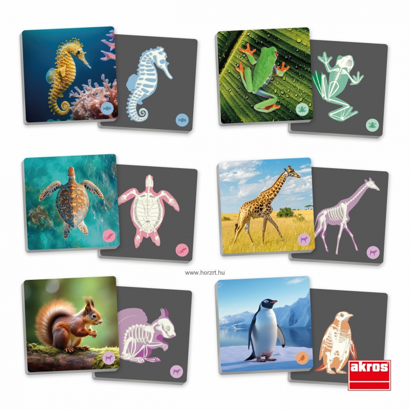 a. Ha egy állat és annak csontváza alkot egy párt, akkor megtartjuk a kártyapárt, és további két kártyát fordítunk fel, hogy újabb párokat keressünk.