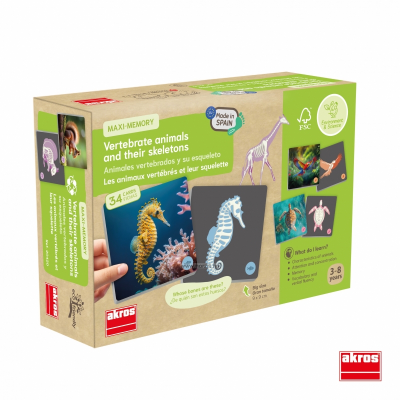Ideális játék a memória gyakorlására, a figyelem fejlesztésére és a gerinces állatok különböző csoportjainak - emlősök, madarak, halak, hüllők és kétéltűek - megismerésére.