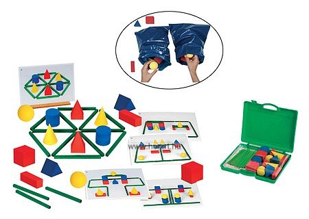 Figyeljük meg a mintakártyán a testek egymáshoz való viszonyát, majd helyezzük el a testeket térben is! Érzékelésfejlesztő eszközként is használhatjuk, ha titokzsákba tesszük.