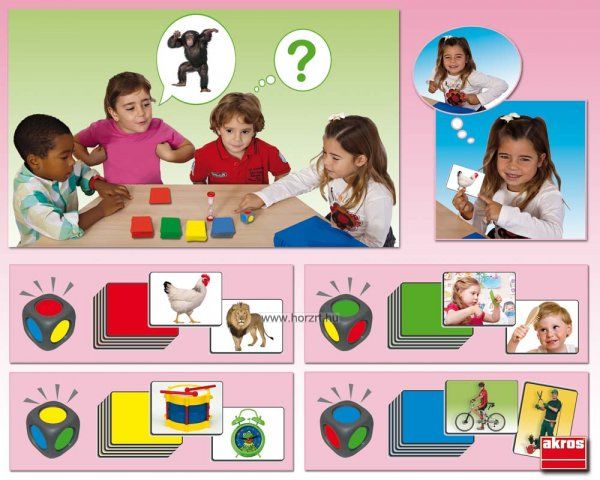 A dobókocka segítségével húzd fel a megfelelő színű kártyát - ne mutasd meg senkinek sem! Fordítsátok meg a homokórát és kezdődhet a játék! Állatot, tárgyat, tevékenységet vagy pedig egy karaktert kell elmutogatnod, mindezt időre! Az nyer, aki előbb kitalálja a feladványt!