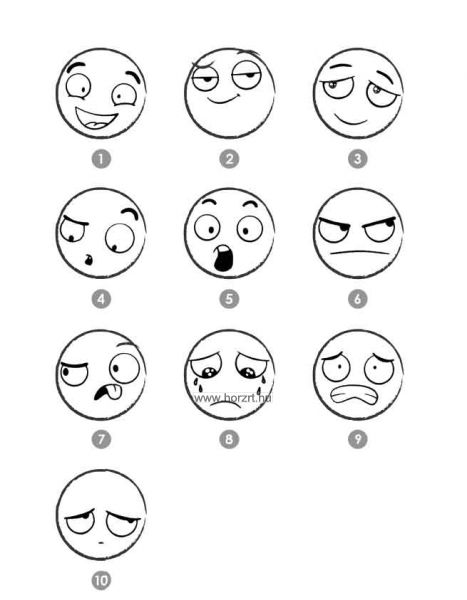 1. Egyesével megfigyeljük a nyomdákat és megpróbáljuk megnevezni, milyen érzelmeket képviselnek.