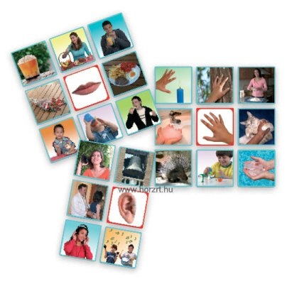 Csoportosítsuk a képeket az érzékszerveknek megfelelően. A kártyák segítségével fejlődik a gyermekek kommunikációja, ismeretanyaga. Tapintás,szaglás, ízlelés, látás, hallással ismerkednek és a hozzájuk tartozó fogalmakkal.Könnyen kombinálható egyéb, környezetünkben fellelhető anyagokkal.
