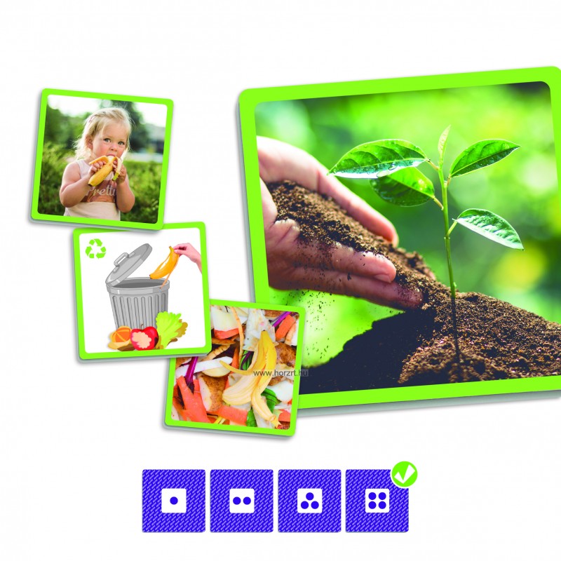 A kártyákon olyan fényképeket láthatunk, amelyek különböző újrahasznosítási módokkal foglalkoznak..