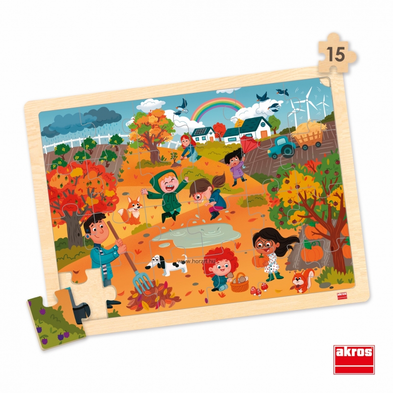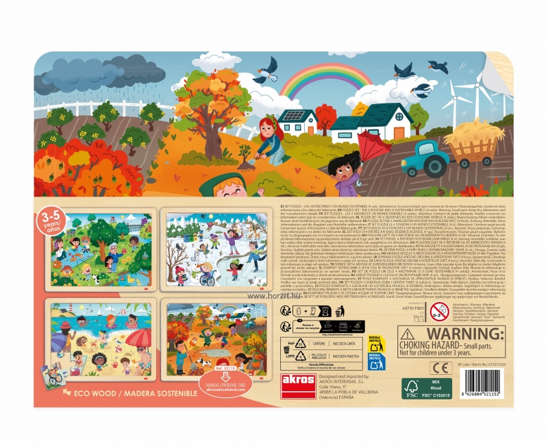 A készlet 4 darab, egyenként 15 darabos kirakóból áll: tavasz, nyár, ősz és tél.