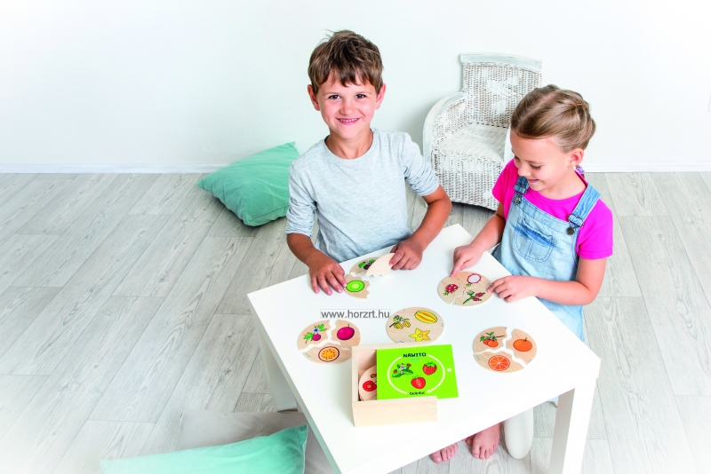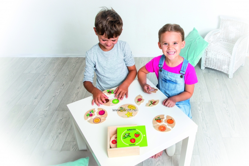 A rejtvény segítségével a gyerekek 10 különböző gyümölccsel ismerkednek meg.