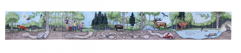 A puzzle négy részből áll (mindegyik 10 darab), amelyek együtt egy varrat nélküli képet alkotnak.