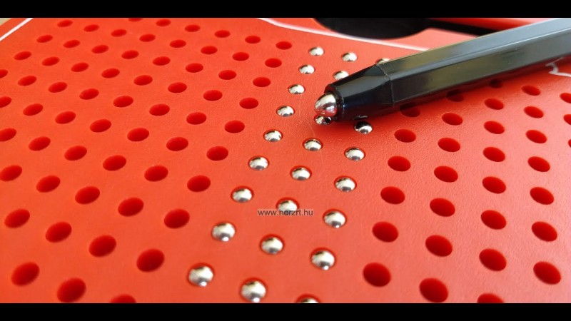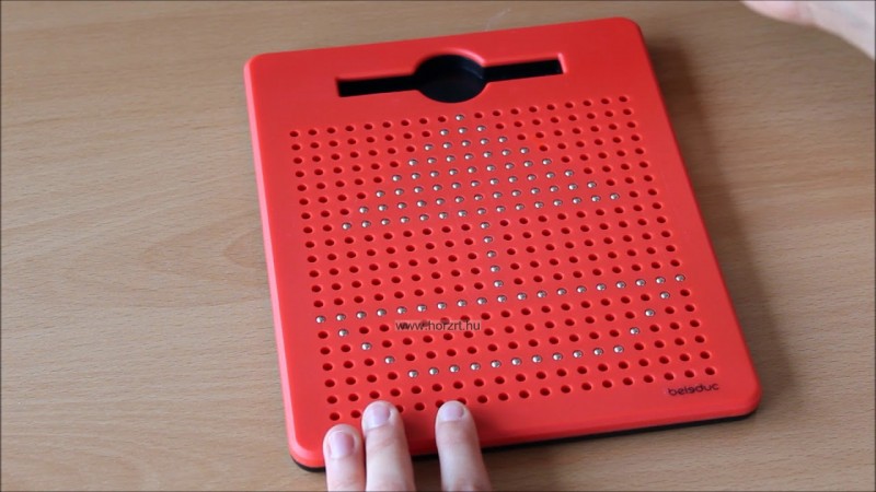 A játék izgalmas anyagválasztása, ötletessége, ahogy fém golyók és mágneses toll segítségével készíthetünk képeket függővé tesz!