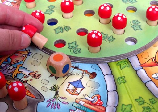 Ha például sárgát dobunk, olyan gombát kell választanunk a korongból, ami alatt sárga jelzés van, ha ez sikerül, akkor máris nyertünk egy gombát.