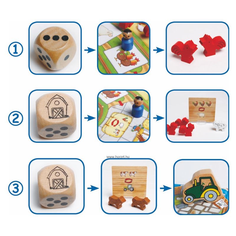 Nézzük meg, hogy milyen mezőre léptünk, majd a kép alapján vegyünk magunkhoz annyi és olyan állatot, ahány darab a képen szerepel.