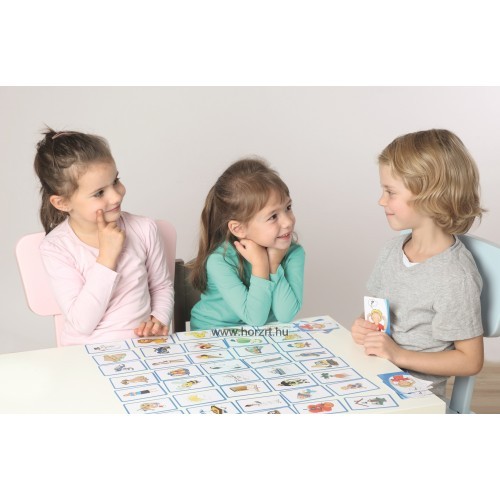 Példák kérdésekre: - "Állat/ személy/ kerekes valami (jármű) van a kártyán?" - "Piros/sárga/zöld dolog van a kártyán?" - "Az az állat/jármű ilyen hangot ad ki…?"