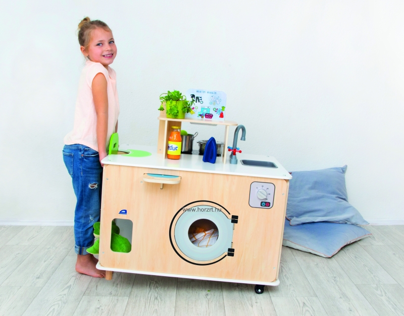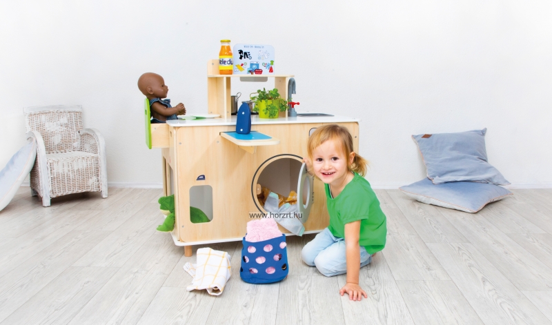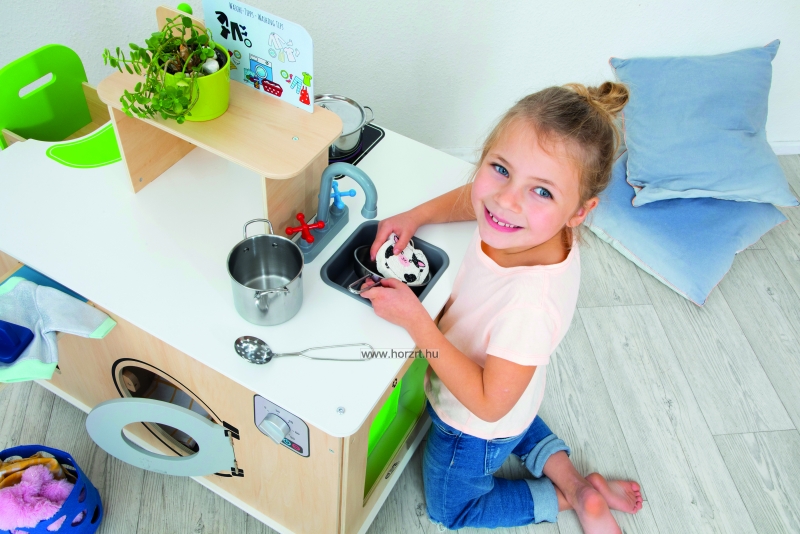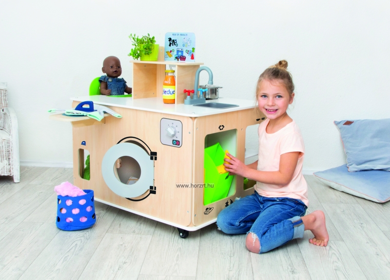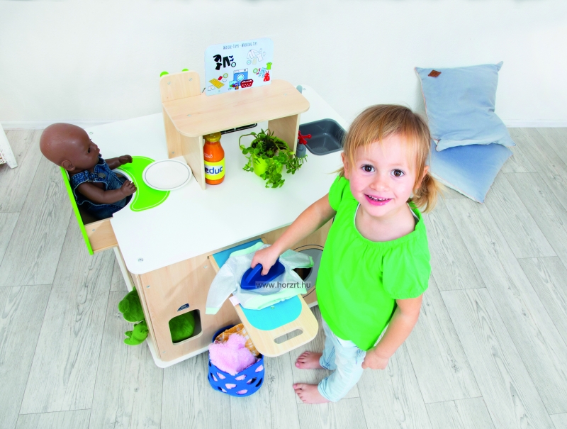 Kiválóan alkalmas szerepjátékra, ahol a gyerekek kipróbálhatják a házimunkát, miközben szórakoznak.