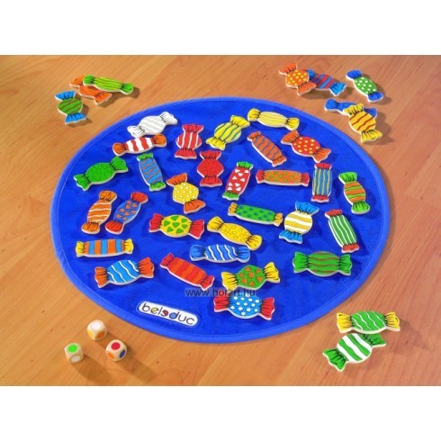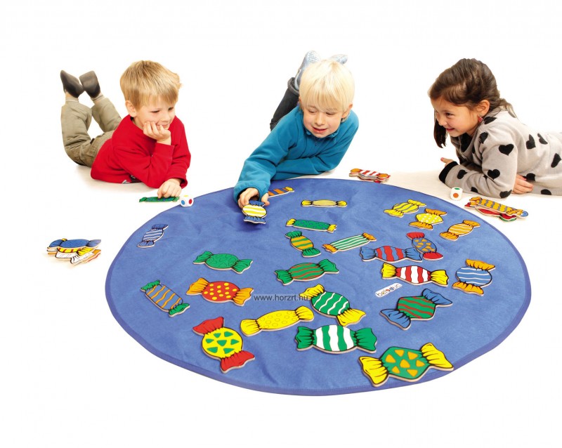 Három dobókockával dobni és azt egy darab cukorkán megkeresni, az az igazi kihívás! A játékosok csak azt a cukorkát vehetik le a játéklapról, amelyiken mindhárom dobókocka színe szerepel. De vajon ki látja meg leghamarabb? Ki reagál leggyorsabban? Győztes az, aki a legtöbbet gyűjti össze. Gyönyörű tartós fém tartódoboza miatt is igen kedvelt játék.- - Egyéb fejlesztési terület: - - reakcióidő fejlesztése - - koncentráció fejlesztése.