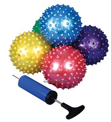 Tüskelabda készlet, pumpával - 25 db 10 cm átmérőjű, puha, érzékelő labda 24 hó+