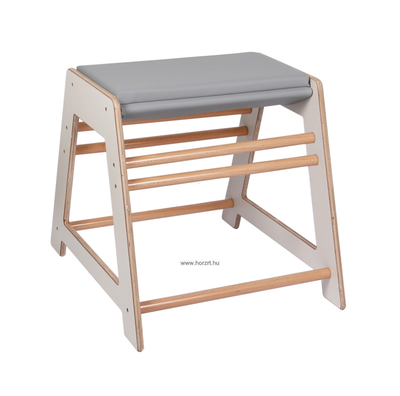 Trapéz alakú Pikler mászóka kiváló minőségű nyírfa rétegelt lemezből és tömör bükkfából. Tetején puha PU ülőke található. Az oldalfalakon különböző távolságra elhelyezett rudak segítik a mozgást.