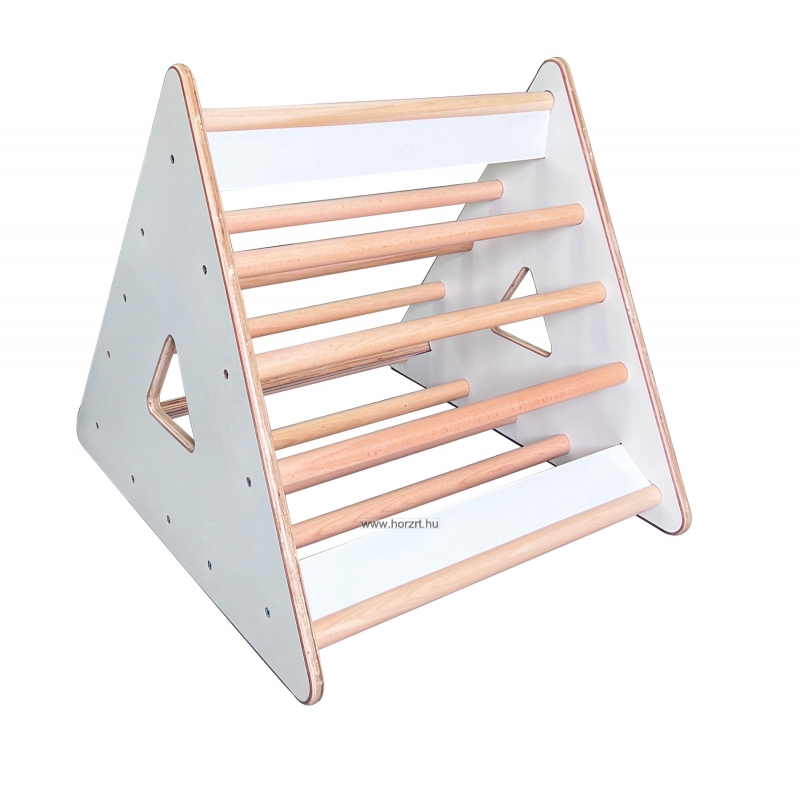 Pikler háromszög mászóka, amely játékos módon fejleszti a gyermekek motorikus készségeit és egyensúlyérzékét. Stabil szerkezet, biztonságos használat. Mindhárom oldalán létrafokok találhatók.