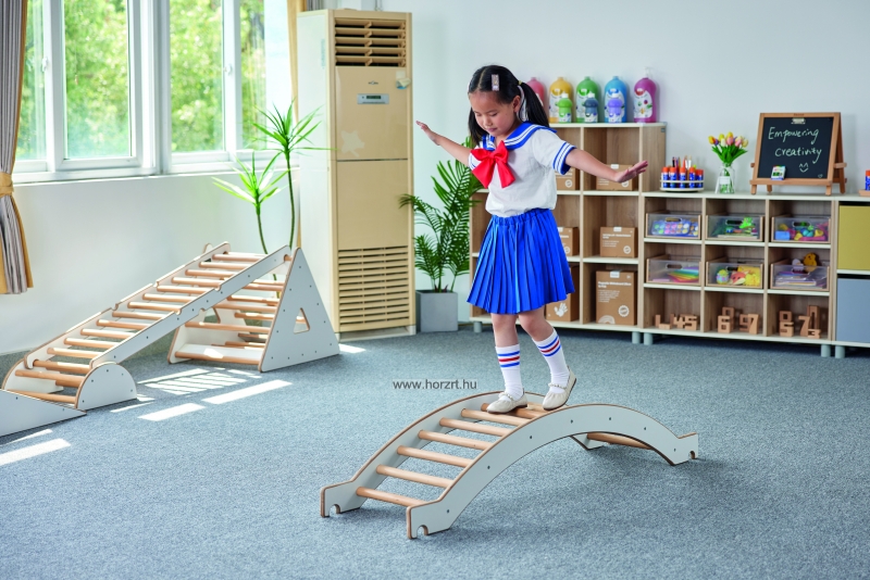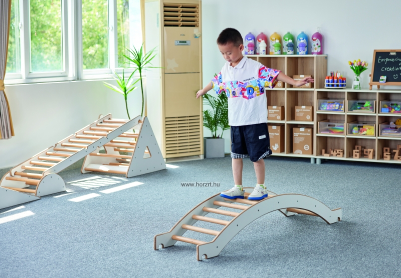 A Pikler mászóhíd könnyedén kombinálható a Pikler többi mászóelemével, de akár önmagában is használható mozgásfejlesztő eszköz. Íves kialakításának köszönhetően, nagyobb kihívást jelent a gyermekek számára. Változatos mozgásfejlesztő pályák alakíthatóak ki, melyek által fejlődik a gyermekek önbizalma, egyensúlyérzéke, mozgáskoordinációja.