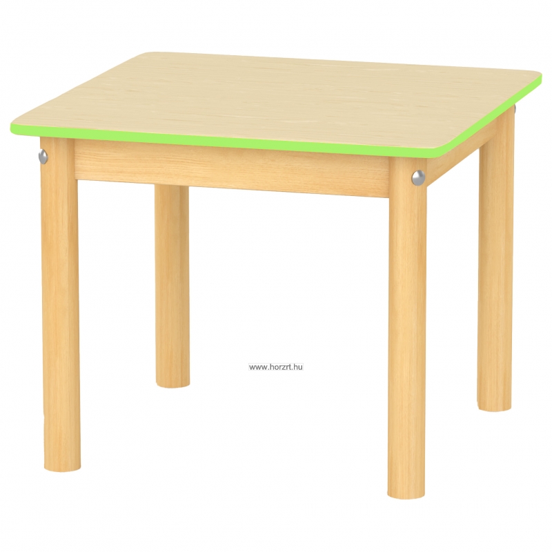 Óvodai négyzet asztal, 60x60x52 cm - juhar asztallap-zöld élzárással