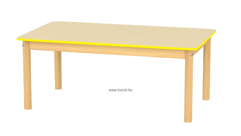 Óvodai téglalap asztal, állítható mag, 120x67x52-58 cm, juhar asztallap-sárga élzárással