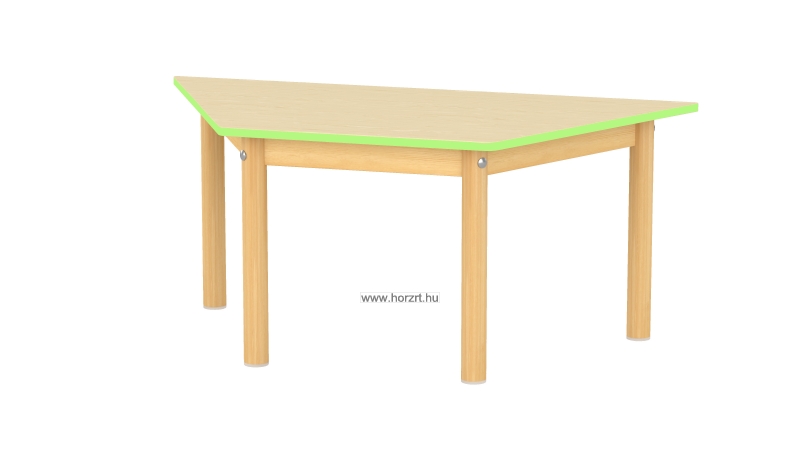 Bölcsődei trapéz asztal, 118x60x46 cm - juhar asztallap-zöld élzárással