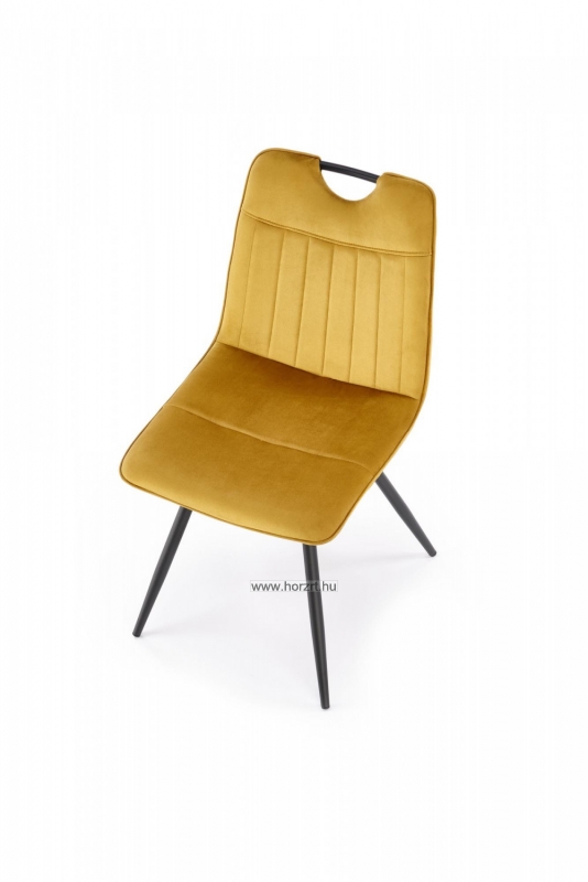 - mustársárga színű, bársonyszövet ülőfelület és támla