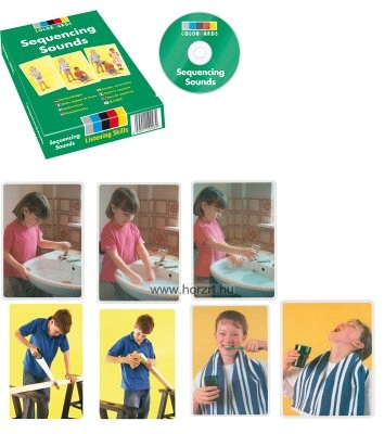 A CD-n hallható hangokat, zörejeket fel kell ismerni és a megfelelő képpel párosítani. Minden darab kártyához külön sávban található hang tartozik, melyet a gyermek akár többször is meghallgathat.