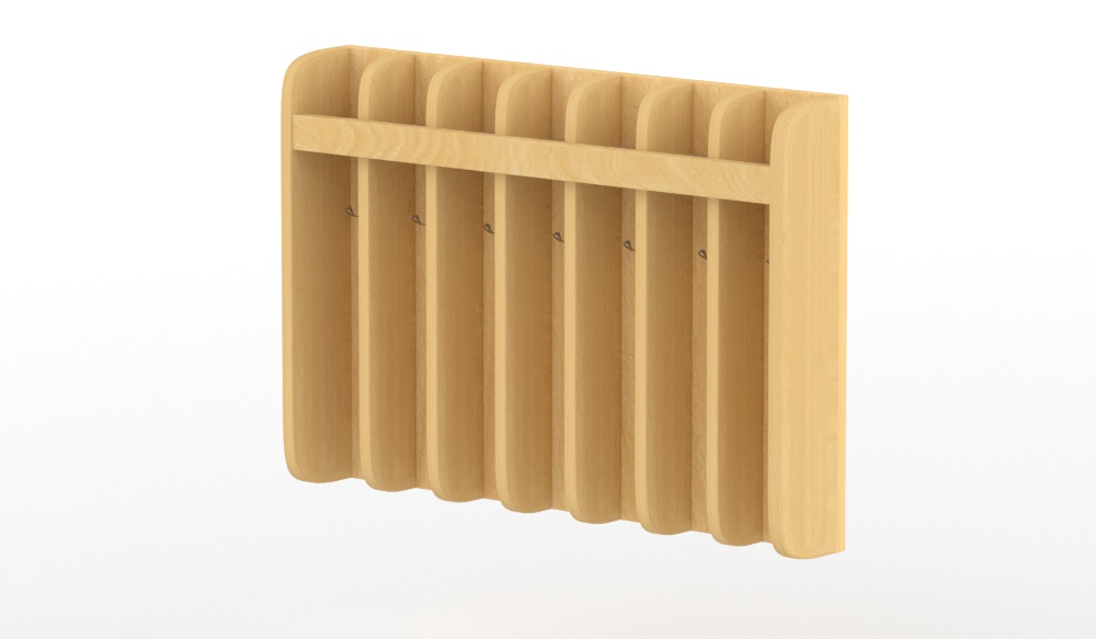 15 személyes fali rekeszes fogmosó és törölközőtartó. Termék mérete: 70 cm széles x 50 cm magas x 12 cm mély, 15 mm vastag, anyaga: Rétegelt lemez. Fakkonként 1 db kétágú akasztót tartalmaz melyen elfér a törölköző és szükség esetén az akasztható kis fésű is. A fakkok elválasztása, végig biztosított, az előírásoknak megfelelően. Készre szerelt termék.Felületkezelése révén könnyen tisztítható és vizes helységben is időtálló.