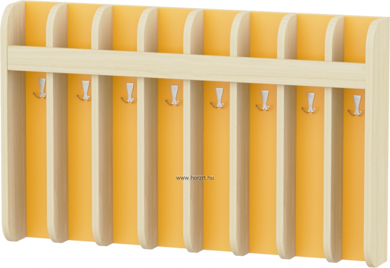 Az előírásoknak megfelelően fakkonkénti elválasztással, így biztosítva, hogy a törölközők nem érnek egymáshoz. A fakkok mindegyike 1-1 db kétágú akasztót tartalmaz, melyre a törölközőt és a nyeles kisfésűt is fel lehet akasztani. A felső fakkokba helyezhetőek a fogmosópoharak. Az ovisjelek is könnyen felhelyezhetőek az erre a részre kialakított díszlécre. Termék mérete: 80 cm széles x 50 cm magas x 12 cm mély Anyaga: Hátlap: Narancssárga színű laminált bútorlap ABS élzárással, Fakkok: 15 mm vastag lakkozott rétegelt lemez. Készre szerelt termék. Hátulján belső akasztó található, mely megkönnyíti a termék falra szerelését. Tipp: Mindig mérjük le a rendelkezésre álló helyet a fürdőben, hogy valóban elfér-e a termék az adott falszakaszon. Igény esetén egyedi méretet is tudunk készíteni. ÖNNEK AJÁNLJUK