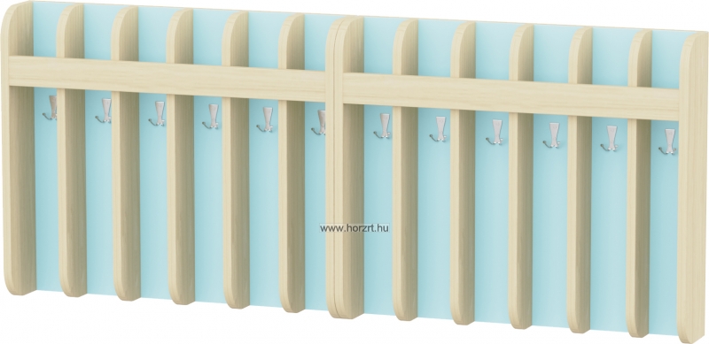 Az előírásoknak megfelelően fakkonkénti elválasztással, így biztosítva, hogy a törölközők nem érnek egymáshoz. A fakkok mindegyike 1-1 db kétágú akasztót tartalmaz, melyre a törölközőt és a nyeles kisfésűt is fel lehet akasztani. A felső fakkokba helyezhetőek a fogmosópoharak. Az ovisjelek is könnyen felhelyezhetőek az erre a részre kialakított díszlécre. Termék mérete: 120 cm széles x 50 cm magas x 12 cm mély Anyaga: Hátlap: Pasztellkék színű laminált bútorlap ABS élzárással, Fakkok: 15 mm vastag lakkozott rétegelt lemez. Készre szerelt termék. Hátulján belső akasztó található, mely megkönnyíti a termék falra szerelését. Tipp: Mindig mérjük le a rendelkezésre álló helyet a fürdőben, hogy valóban elfér-e a termék az adott falszakaszon. Igény esetén egyedi méretet is tudunk készíteni. ÖNNEK AJÁNLJUK