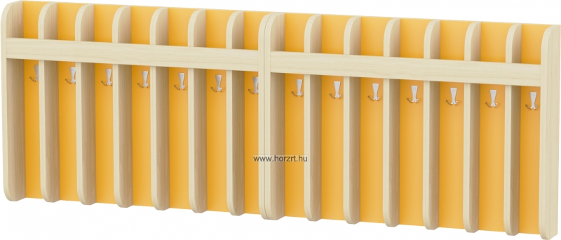 Az előírásoknak megfelelően fakkonkénti elválasztással, így biztosítva, hogy a törölközők nem érnek egymáshoz. A fakkok mindegyike 1-1 db kétágú akasztót tartalmaz, melyre a törölközőt és a nyeles kisfésűt is fel lehet akasztani. A felső fakkokba helyezhetőek a fogmosópoharak. Az ovisjelek is könnyen felhelyezhetőek az erre a részre kialakított díszlécre.