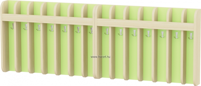Az előírásoknak megfelelően fakkonkénti elválasztással, így biztosítva, hogy a törölközők nem érnek egymáshoz. A fakkok mindegyike 1-1 db kétágú akasztót tartalmaz, melyre a törölközőt és a nyeles kisfésűt is fel lehet akasztani. A felső fakkokba helyezhetőek a fogmosópoharak. Az ovisjelek is könnyen felhelyezhetőek az erre a részre kialakított díszlécre.