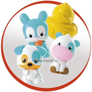 A készlet tartalma: egy beszélő mozdony és két kocsi 4 mulatságos kisállattal.