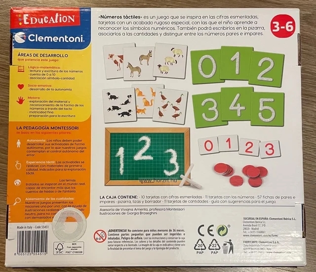Ez a játék a tapintási érzékelésre épít, és a Montessori módszert alkalmazva segíti a gyermekeket a számok elsajátításában. A készlet tíz csiszolópapírral bevont kártyát tartalmaz, melyek különleges felülete lehetővé teszi, hogy a gyerekek az ujjaikkal végigérintve ismerkedjenek meg a számok alakjával és memorizálják azok formáját. A játék elősegíti a numerikus gondolkodást és a mennyiségek megértését, például a páratlan és páros számok összefüggéseinek felismerésével. Az érintéses tanulás révén a gyerekek először megtanulják a számok formáját, majd az asszociációs készségek fejlődésével összepárosíthatják őket a mennyiséglapkákkal és jelzőkkel.