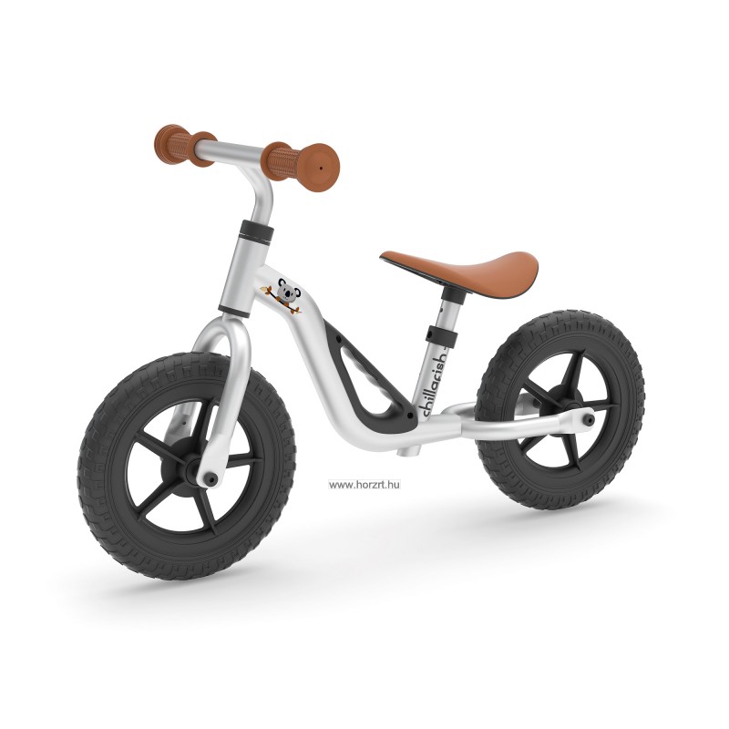 Könnyű, 2,5 kg-os fémváz szerkezettel ellátott futóbicikli 10-es méretű kerekekkel.