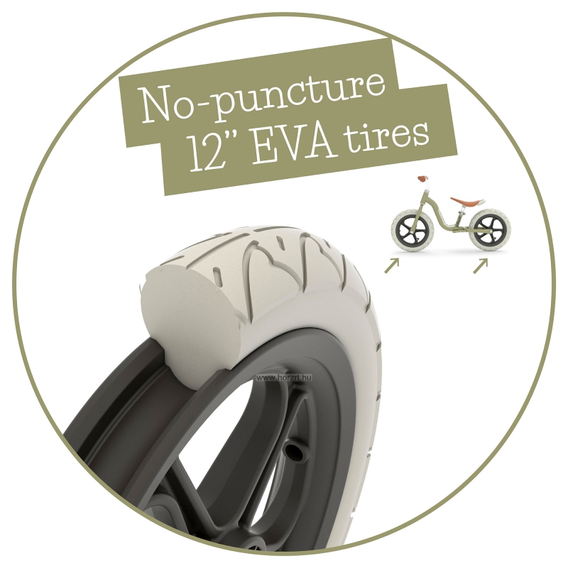 Kerekei azon túl, hogy nem a megszokott színben lettek megalkotva, abban is különlegesek, hogy tömör gumiból készültek, így nem lehet őket kiszúrni. Mindez a biztonságos és tartós használathoz nagy mértékben hozzájárul.