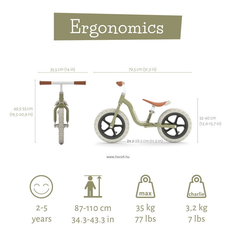 Ülése és kormánya egyaránt állítható, így a bicikli gyermekünkkel együtt nőhet, egészen 5 éves korukig.