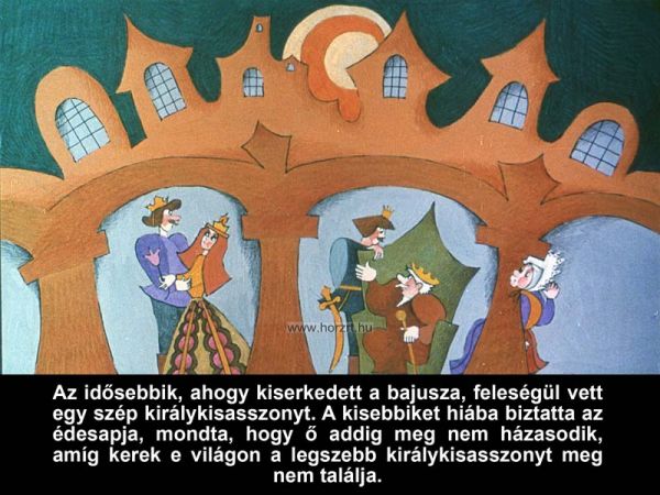 Népmese, melyben a királyfi feleséget keres, s kalandos útja során sok próbát kell kiállnia.