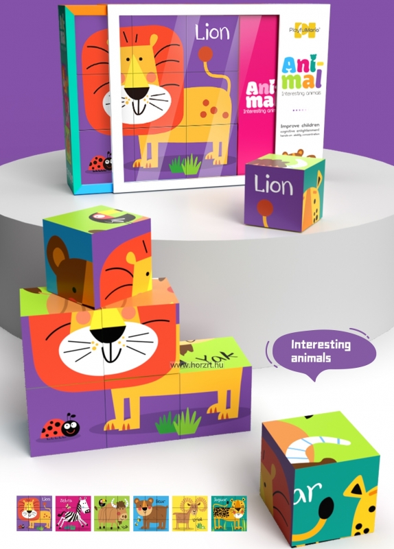 A kockák kombinálásával a kicsik különféle állatok képeit rakhatják ki, ezzel egyre fejlődik a logikus gondolkodásuk, kézügyességük és kreativitásuk. Ideális választás 3 éves kortól!