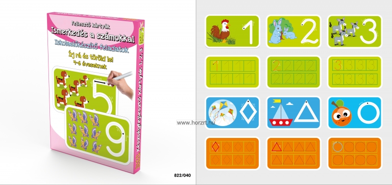 A számok leírásának helyes sorrendjét követve, a kártya segít megtanulni a számok formájának pontos megrajzolását.