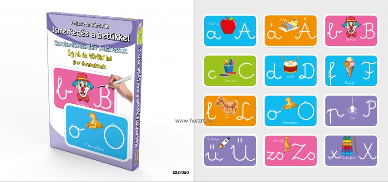 A betűk leírásának helyes sorrendjét követve, a kártya segít megtanulni a betűk formájának pontos megrajzolását.