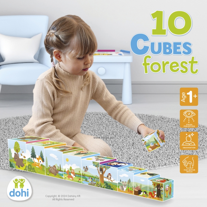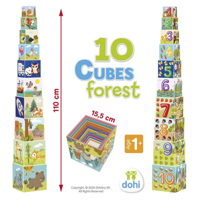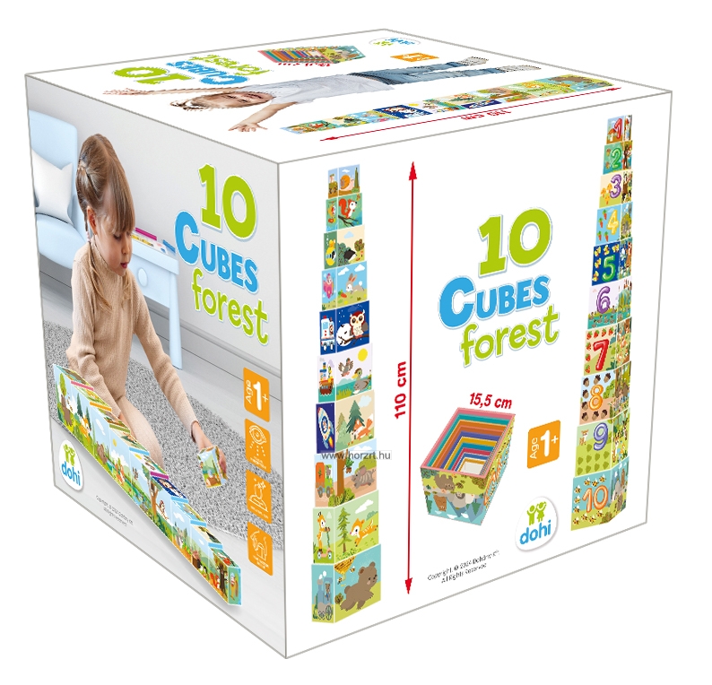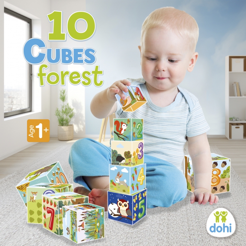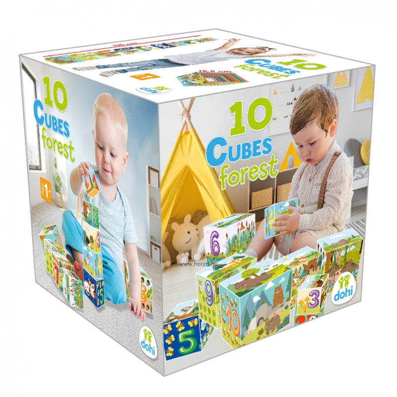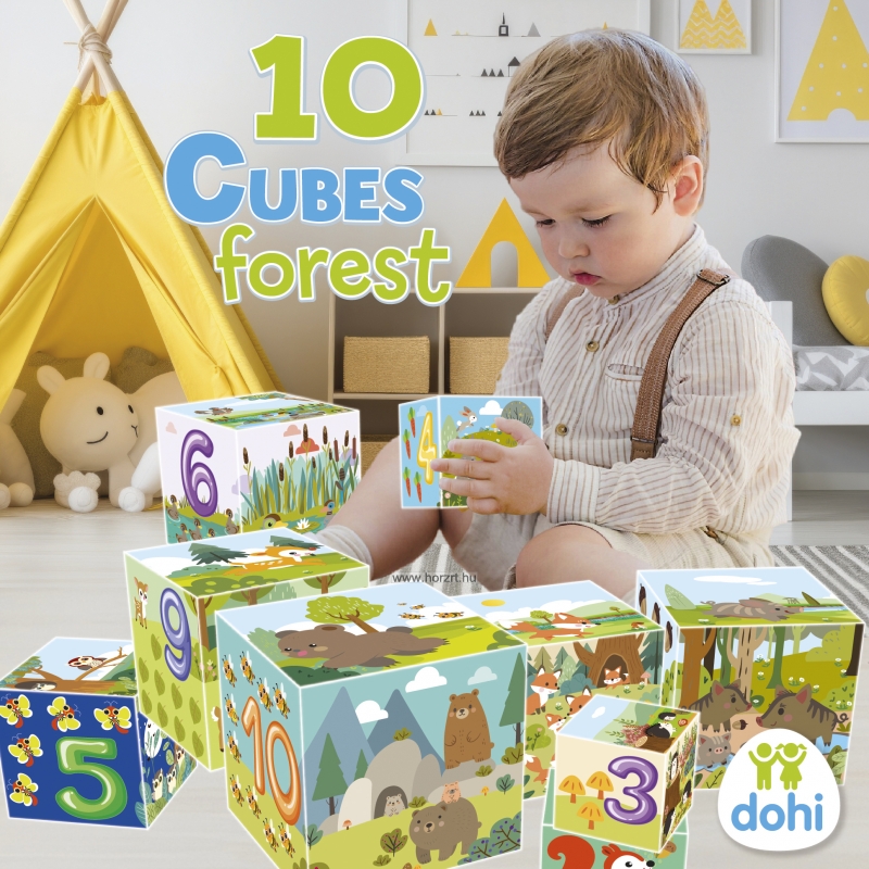 Tudod, hogy milyen állatok laknak az erdőben? És azt tudod, hogy milyen növényekkel találkozhatsz az erdőben? A számokat ismered? Ez a 10 kockából álló, erdőhöz kapcsolódó motívumokkal díszített készlet remek szórakozást ígér a gyerekeknek a kérdések kiderítésére.
