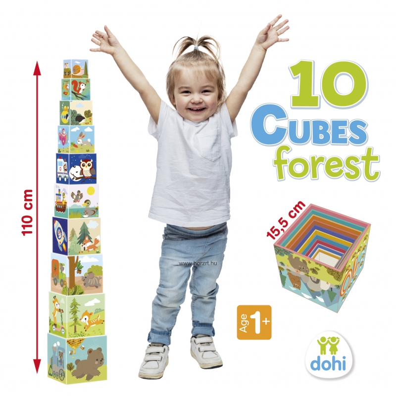 A különböző méretű kockák oldalain más és más képek szerepelnek. Építs egy hatalmas tornyot (110 cm) úgy, hogy a legnagyobb kocka legyen legalul. A kockán lévő számok is segítenek az építkezésben. A legnagyobb kocka oldalának a mérete 15,5 cm. Helytakarékos, mert a kockák egymásba rakhatók. ÖNNEK AJÁNLJUK
