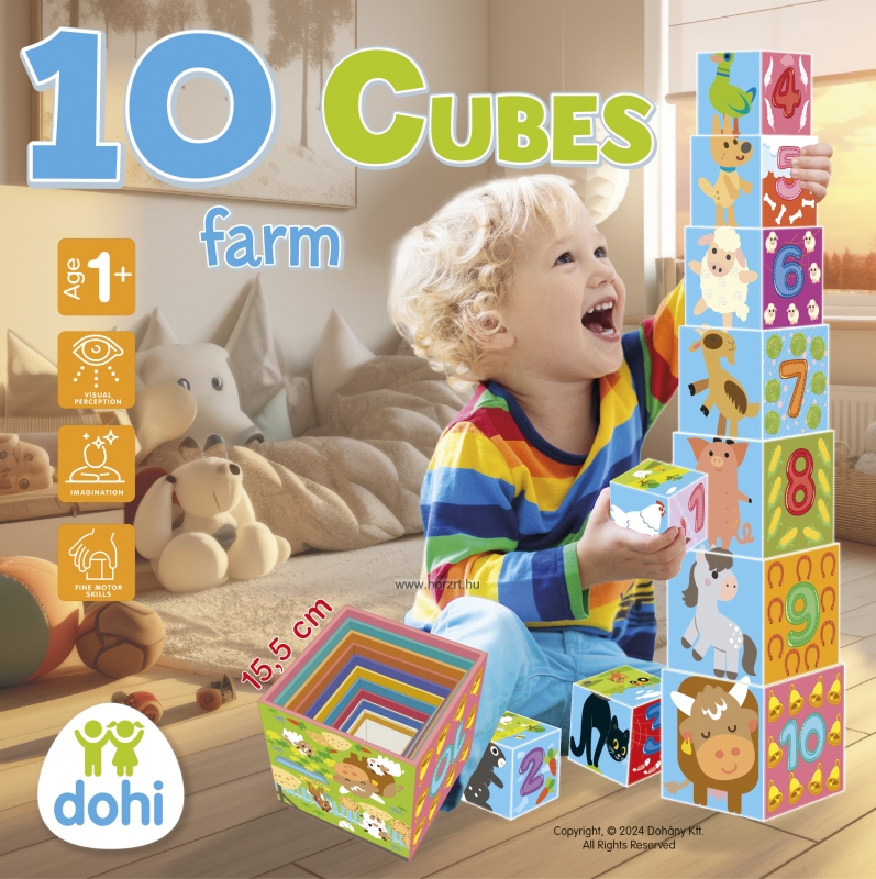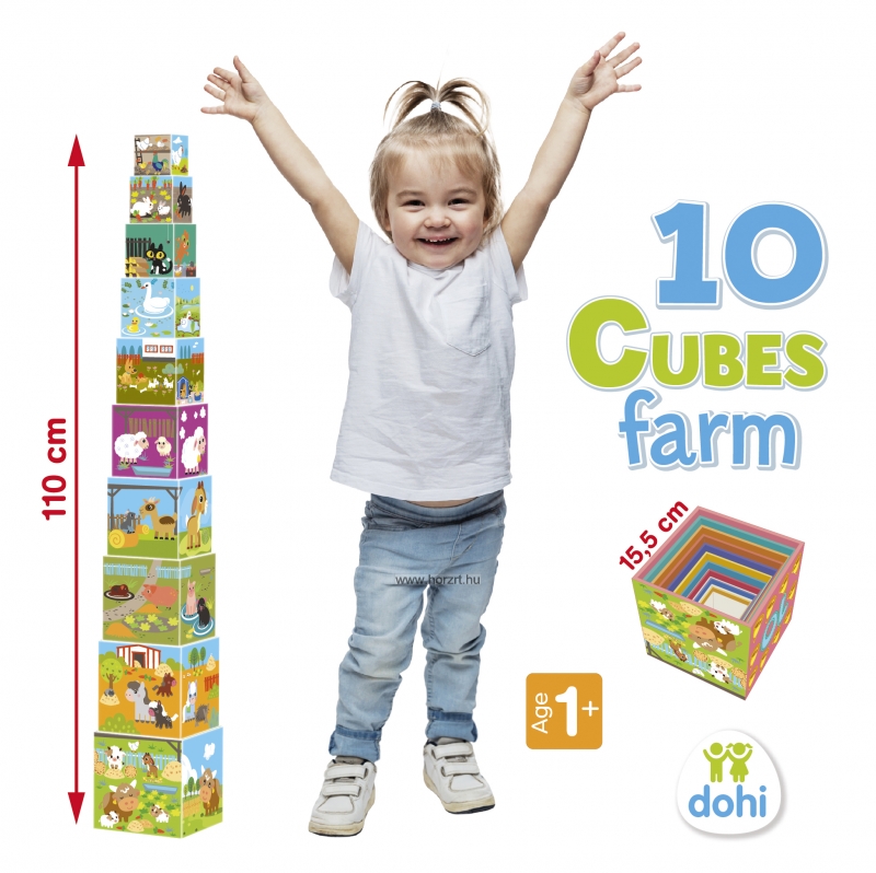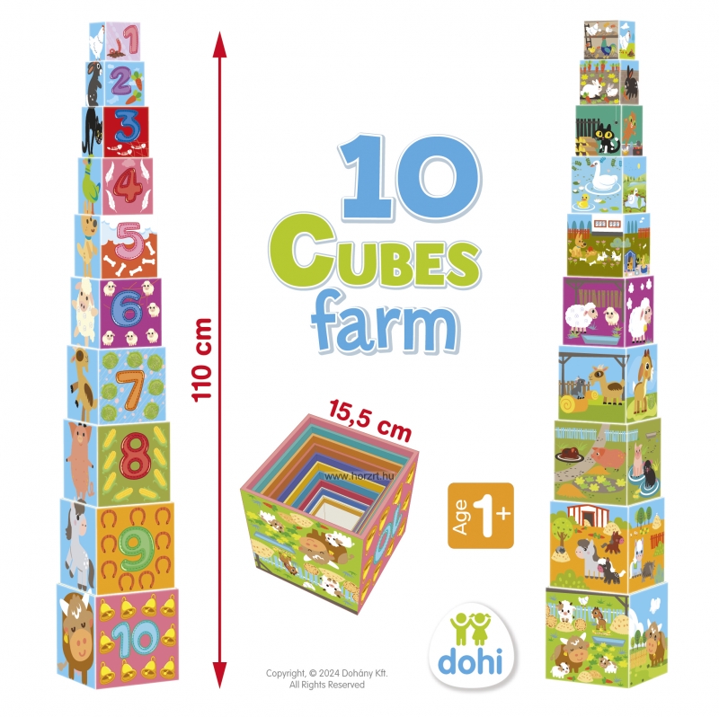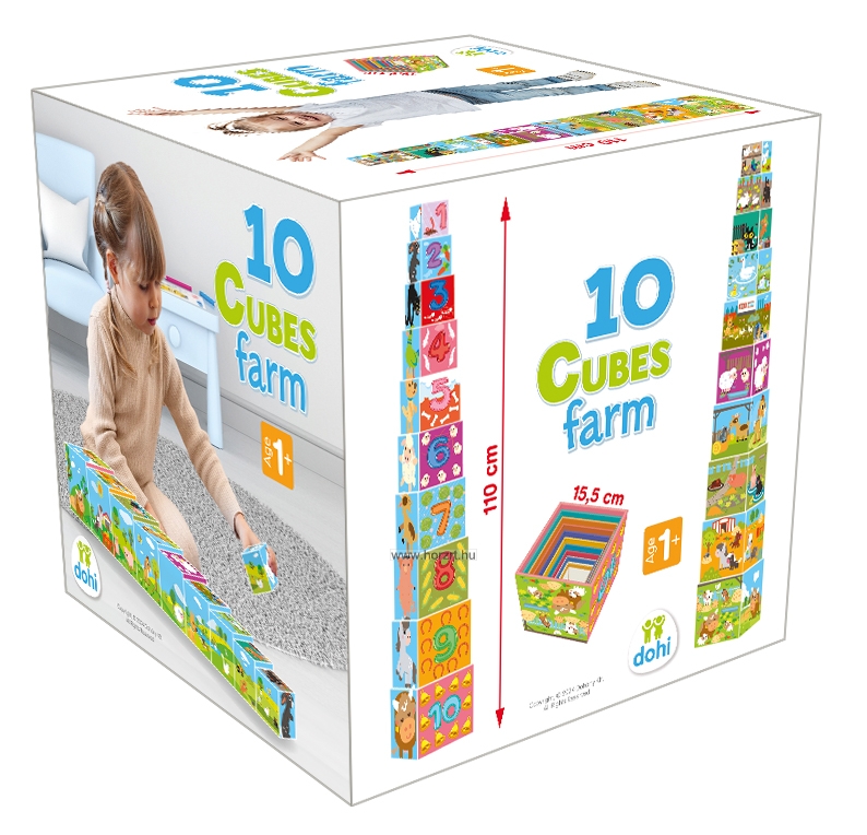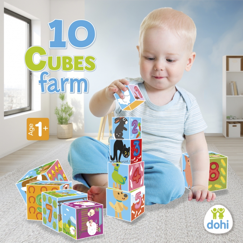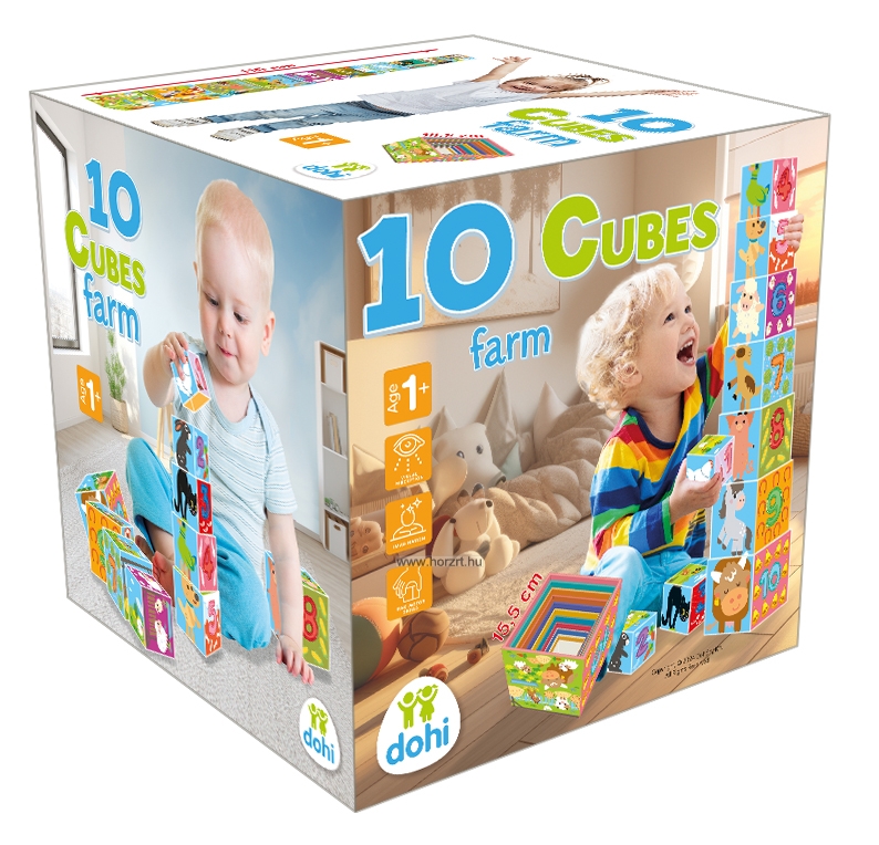 Tudod, hogy milyen állatok laknak a farmon? És azt tudod, hogy milyen növényekkel találkozhatsz ott? A számokat ismered? Ez a 10 kockából álló, farmhoz kapcsolódó motívumokkal díszített készlet remek szórakozást ígér a gyerekeknek a kérdések kiderítésére.